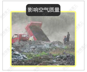 建筑垃圾對我們的生活環境具有廣泛的侵蝕作用,對于建筑垃圾如果實行長期不管的態度,那么對于環境衛生、居住生活條件、土地質量評估等都有惡劣影響。首先大量的土地堆放建筑垃圾后,會降低土壤的質量,降低土壤的生產能力;建筑垃圾堆放于空氣中,影響空氣質量,一些粉塵顆粒會懸浮于空氣中,有害人體健康;長期的堆積使建筑垃圾的有害物質滲入到地下水域,污染水環境;如果建筑垃圾在城市中堆放的話,對城市環境美觀度都不利;建筑垃圾的堆放可能存在某些安全隱患,隨時可能會發生一些事故。
